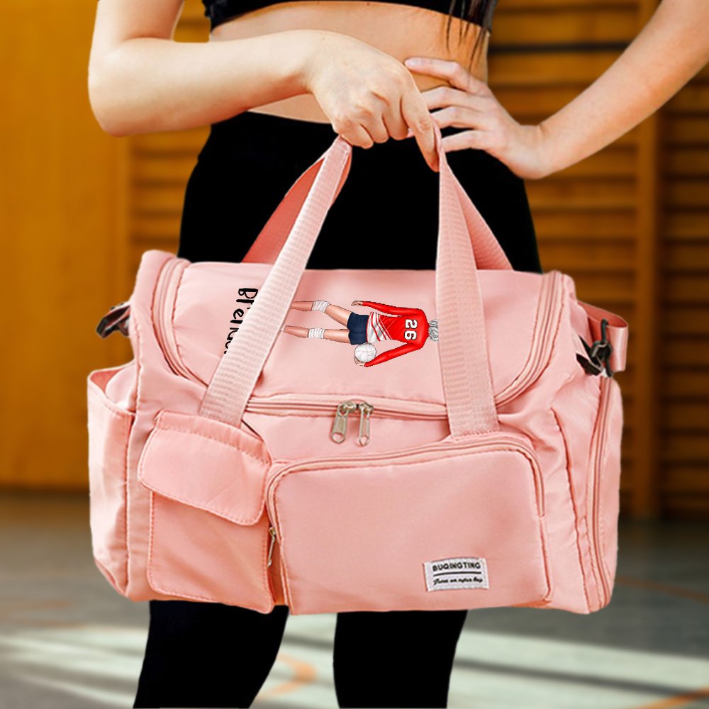 Deze tas heeft een dynamisch ontwerp van een volleybalmeisje. De tas is persoonlijk aan te passen, zodat je je naam en voorkeursnummer kunt toevoegen, terwijl hij verkrijgbaar is in vier verfijnde kleuren. De tas weerspiegelt perfect je passie voor volleybal en je persoonlijke esthetische voorkeuren, waardoor het niet alleen een praktisch item is, maar ook een uniek pronkstuk.
