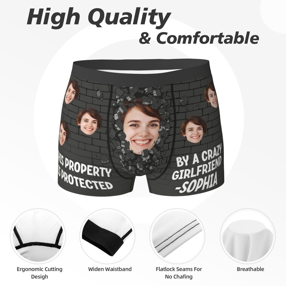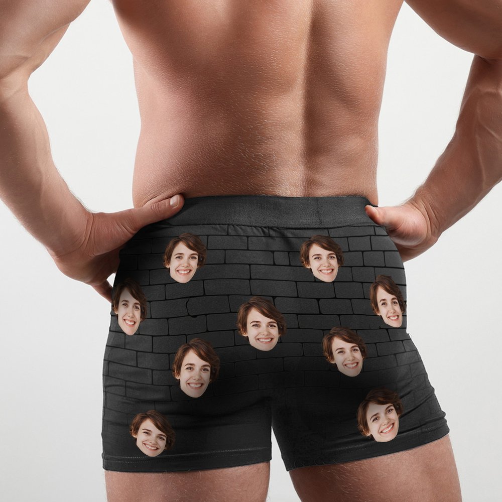 Maak deze boxerslip uniek: upload een foto van je gezicht, kies een basiskleur, kies een titel (zoals "vriendin" of "vrouw") en voeg je naam toe. Het brengt je eigen ontwerp tot leven - je foto, speelse tekst en persoonlijke details worden gecombineerd tot een leuk, intiem stuk dat echt van jou is.