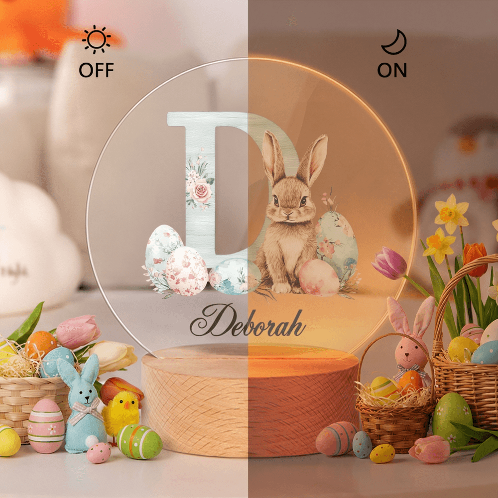 Het nachtlampje heeft schattige waterverfletters, paashazen, bloemen en eierpatronen, waardoor elk lampje zijn eigen unieke charme heeft. Het aanpasbare naamontwerp voegt een persoonlijk tintje toe, waardoor er een uniek kunstwerk voor je kind ontstaat. Dit prachtige ontwerp brengt niet alleen vreugde, maar voegt ook een feestelijke sfeer toe aan elk huis.