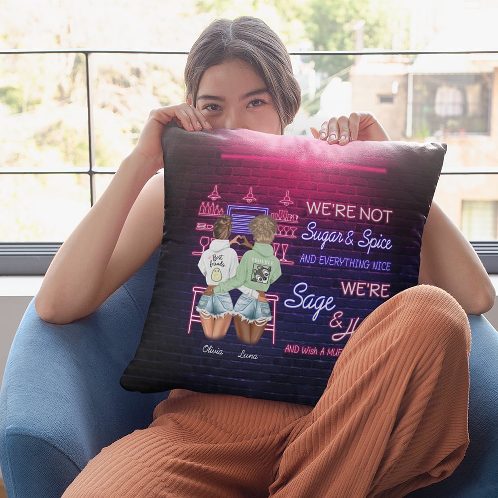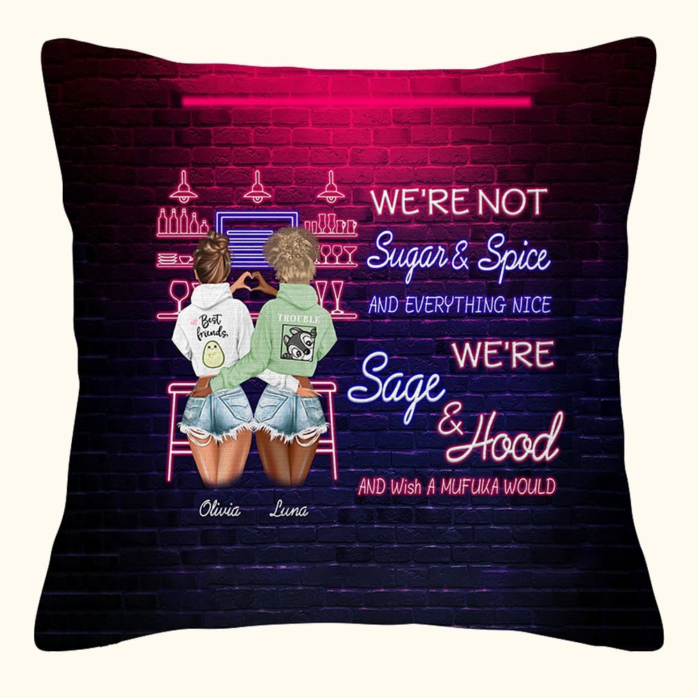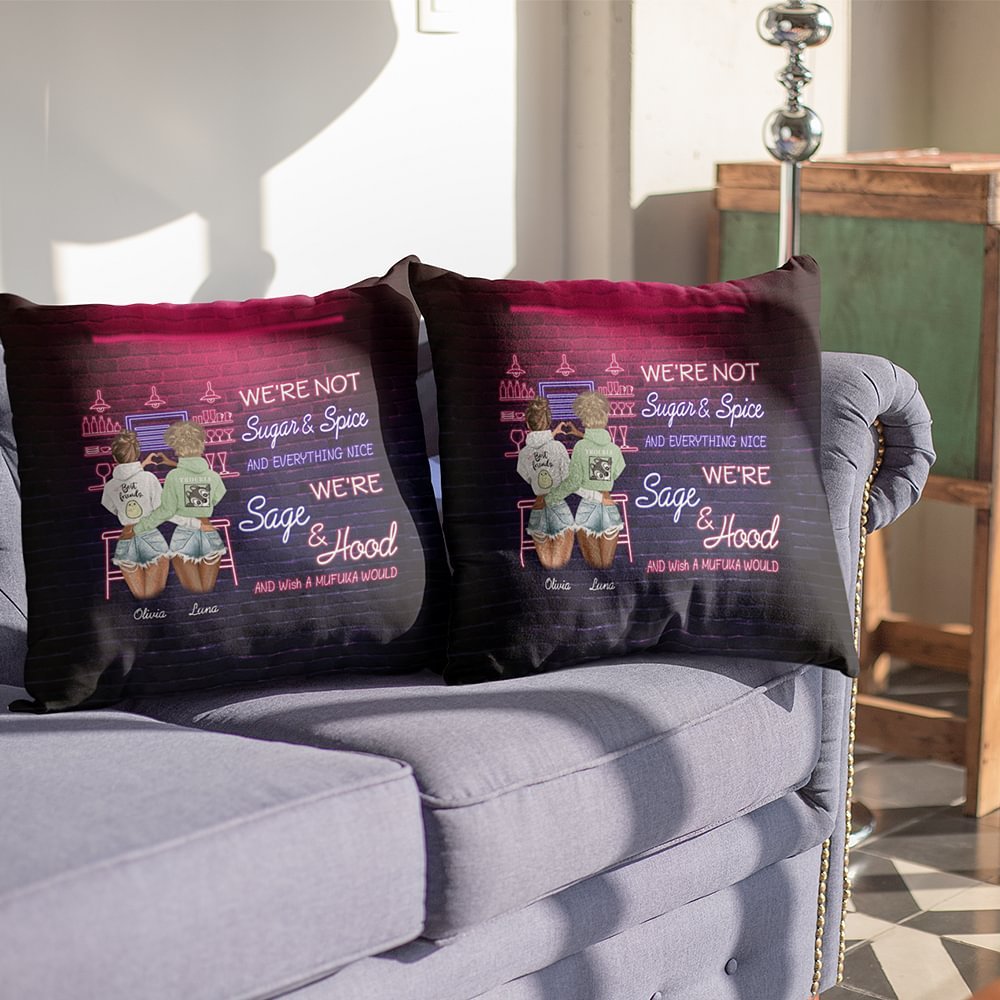 Gepersonaliseerd We're Sage and Hood Besties Best Friends at Bar Kussenhoes Vriendschap Cadeau Slaapkamer Decor