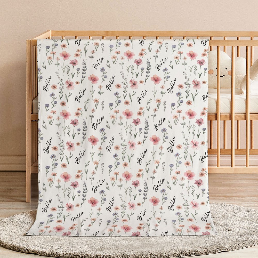 Gepersonaliseerde Wilde Bloemen Zachte Babydeken met Naam Baby Shower Verjaardag Kerstcadeau voor Pasgeborenen Nieuwe Ouders