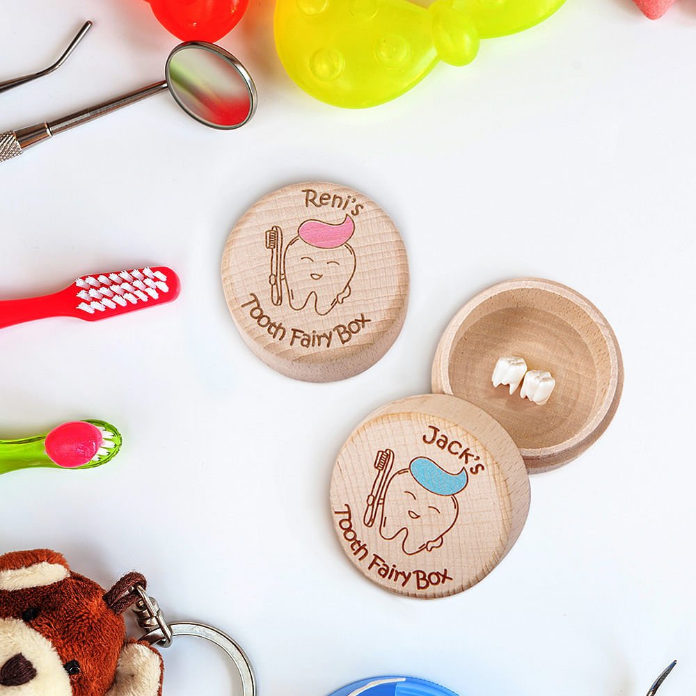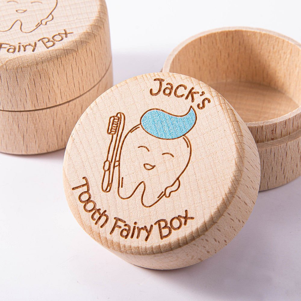 Gepersonaliseerde houten tandenfee doos met gegraveerde naam eerste tand Keepsake nieuwe baby cadeau voor jongen meisje