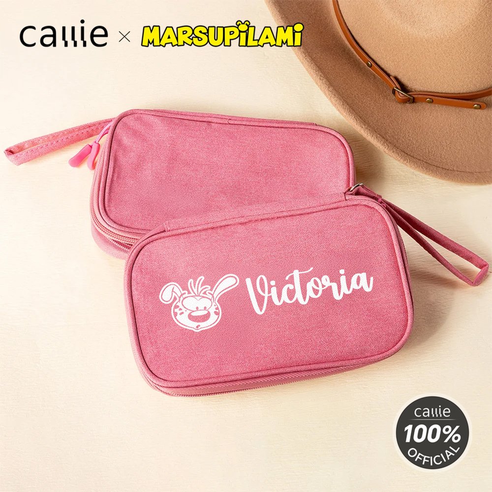 In samenwerking met de Belgische striptekenaar André Franquin, die in 1952 het personage Marsupilami bedacht, heeft dit zakje een charmant en zeer herkenbaar ontwerp met een retro-trendy uitstraling. Het kan ook worden aangepast met een persoonlijke naam, waardoor een unieke en individuele identificatie ontstaat en het opbergtasje zowel stijlvol als persoonlijk wordt.