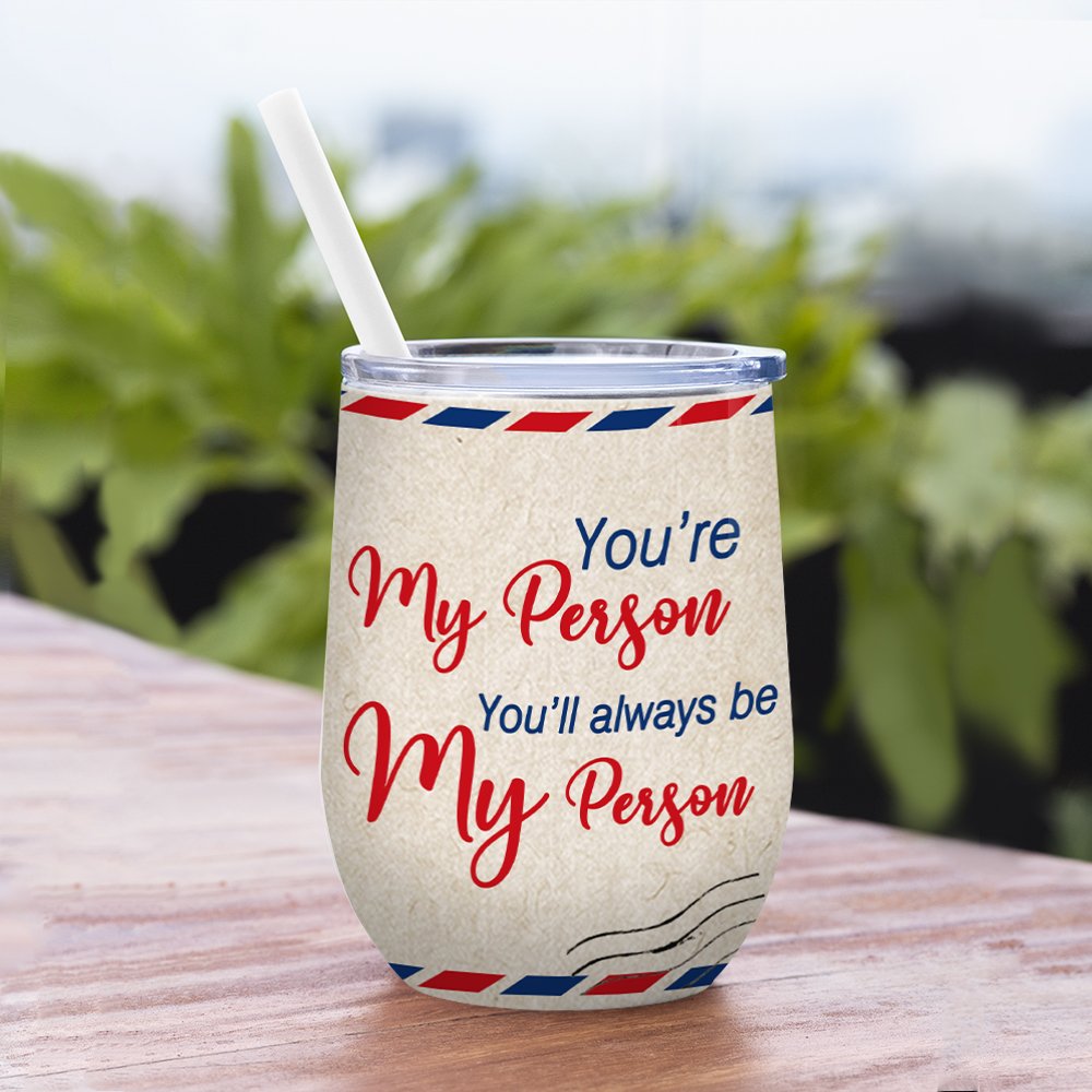 De "You"ll Always Be My Person" quote viert de onbreekbare band die je deelt met je beste vriend. En wat deze wijntrommel zo bijzonder maakt, is de personalisatie. Je kunt namen toevoegen en een ontwerp dat jullie vriendschap perfect weergeeft.